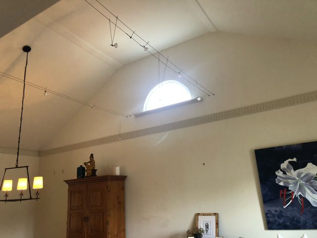 So it’s actually not a hugely. Doesn’t get a lot of light for as big of a room as it is. And should I think about putting some sort of chandelier or pendant over the sitting area part and or recessed lighting when we eventually do the ceiling?