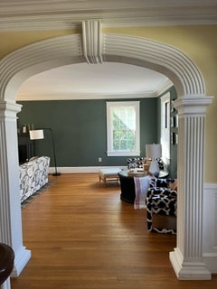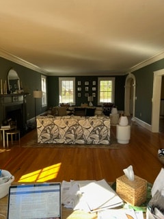 Taking inspiration from your arched entryway, an eye-catching display on the opposite wall may help draw the eye. Don’t feel you need to fill every inch—prioritizing functionality and comfort will make the most of your gorgeous Greek Revival home. We’re excited to see how your space evolves!