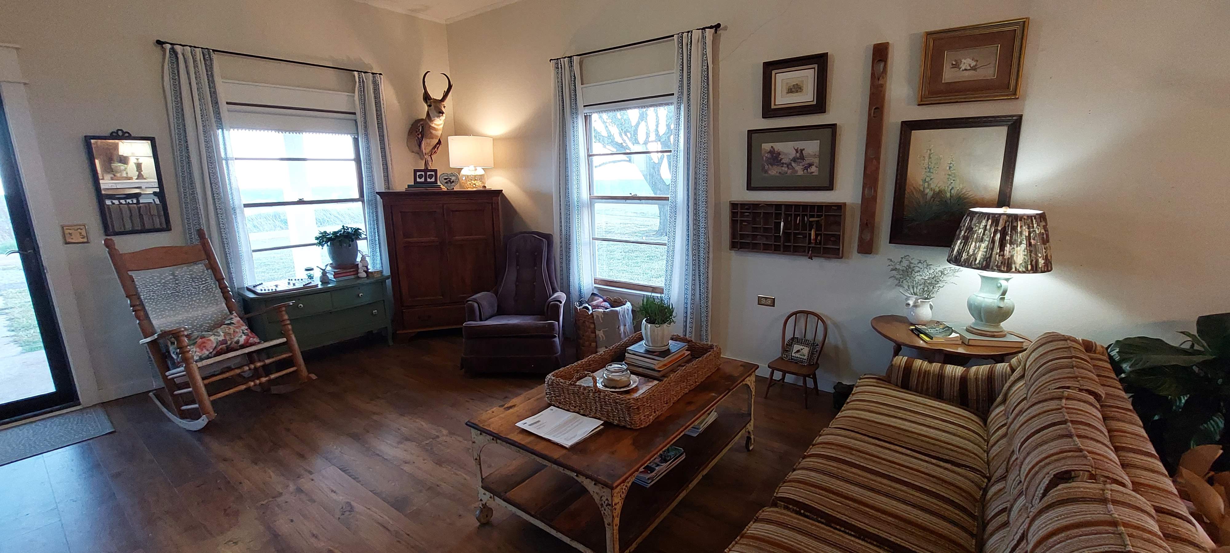 - I want to highlight the beautiful windows we have, but I don’t know if the current window treatments look right. How would you dress these windows? (Note: I hung these striped drapes the day before I listened to the Eric Ross episode in which he instructed NO striped curtains. Forgive me, Eric!)