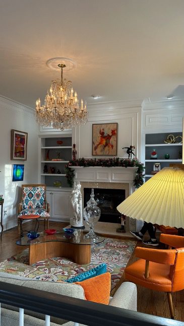 With a few minor tweaks like updating the rug, larger seating pieces, and adding drapes, you can rock the fun color palette and grand millennial aesthetic while celebrating the treasured pieces that are clearly important to you!