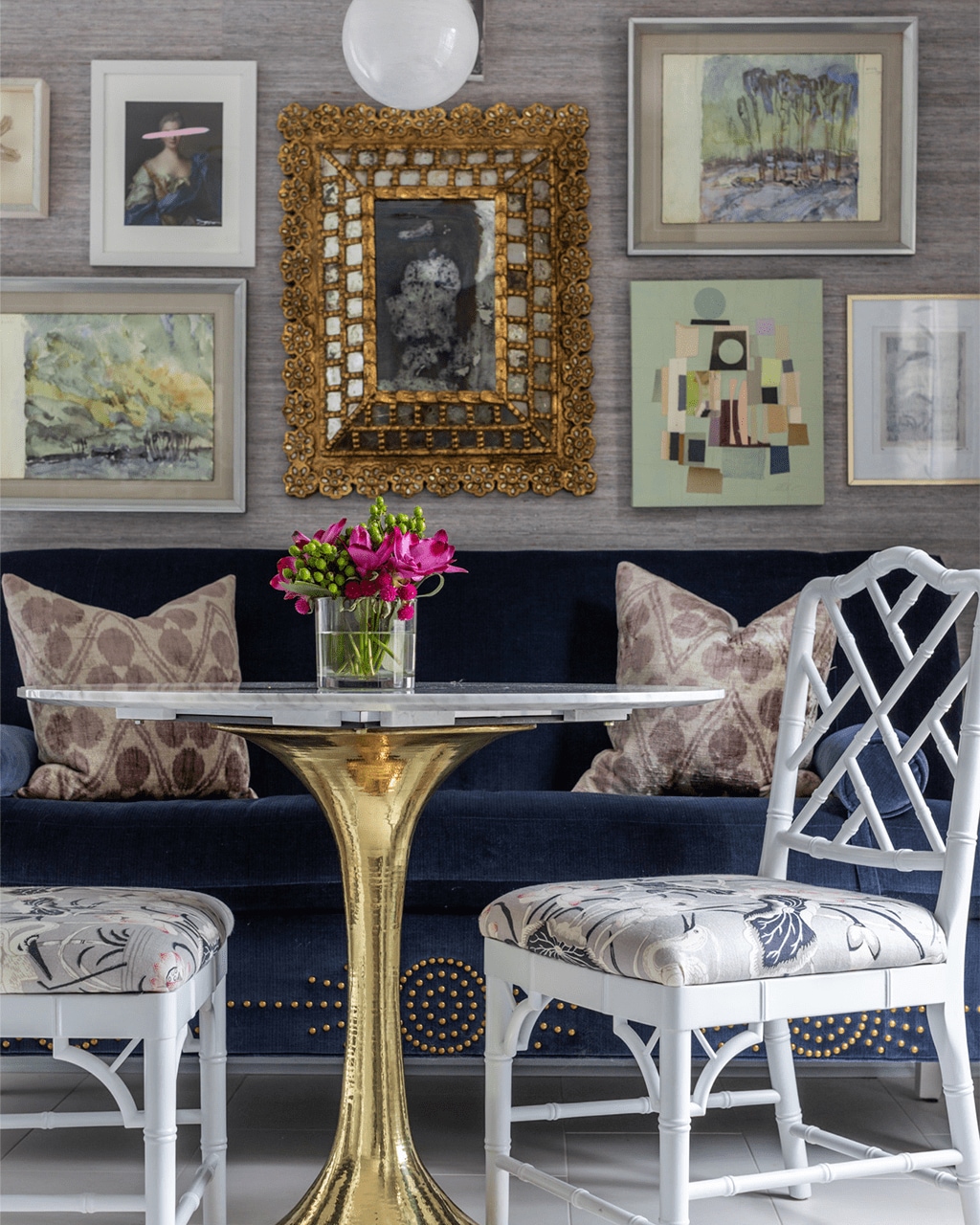 As for your vintage, hand-tied wool rug, Rachel reassures you that it’s a beautiful, timeless piece. She advises keeping it as the foundation for the room’s color palette, rather than trying to replace it. The pattern and quality are lovely, and they will provide that fresh take on the Southern traditional style you’re going for.