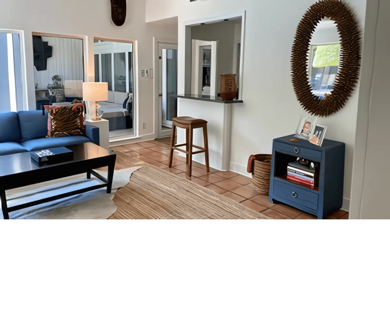 Here’s my dilemma: We moved into a ranch-style 80’s home two years ago, with most ceilings at 8′ high, except for the living room and sunroom. This room hasn’t come together like the rest of our home, and I’m looking for suggestions to make it feel more cohesive and calming. Should I consider a more colorful rug and then paint the walls a color from the rug?