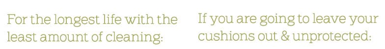 Do you dread cleaning outdoor furniture as much as we do? Here’s the good news: you can prevent or at least delay having to deep clean your cushions with these tried-and-true methods: